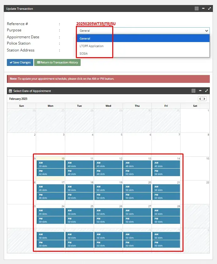 Kindly select a date on which you are available to visit the police station for your clearance appointment. You can see the calendar with appointment time slots details, click on AM or PM option on your desired date and book a slot for your national police clearance appointment at a police station.