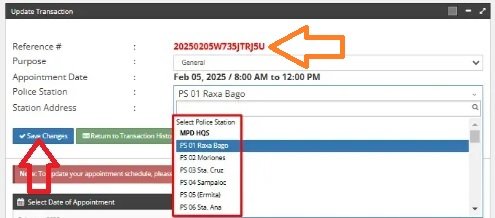 After selecting a police station for your clearance appointment, you should click on Save Changes and note down the Reference Number. You will need to provide your Reference Number at concerned police station on your appointment day. The police personnel will use the reference number to process your clearance application.